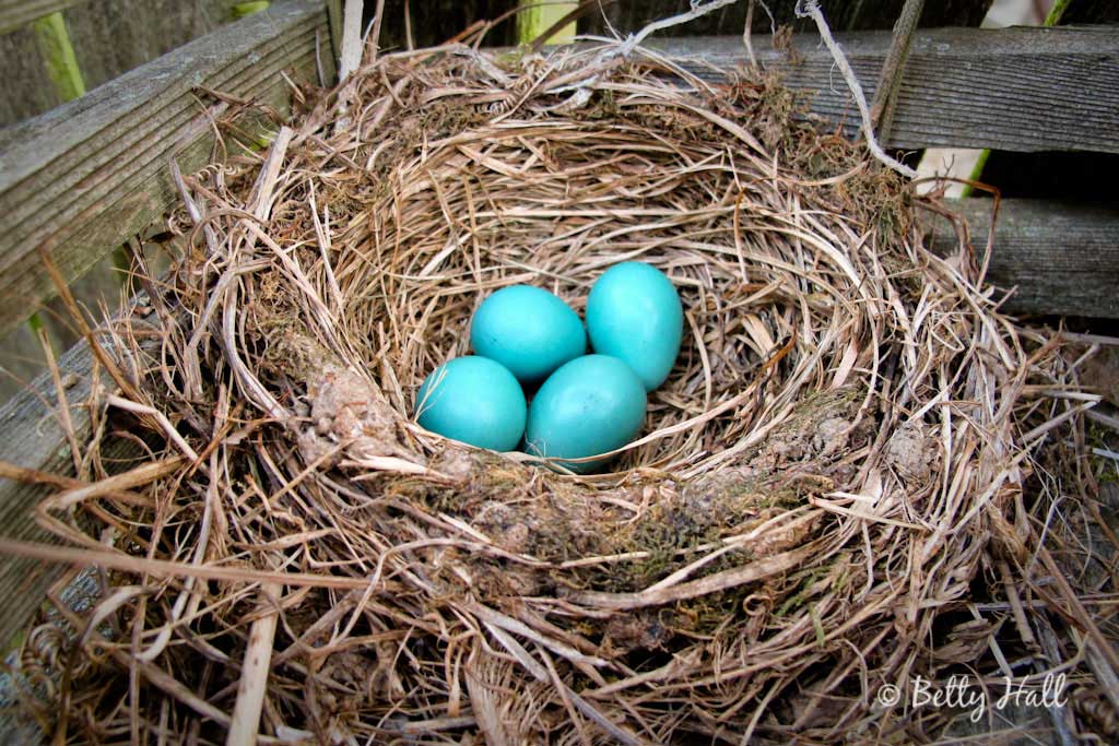 We had a nest of 3 Robin eggs in our upstairs window box. We watched them each go from egg to fledgling and now I hear the babies in the yard as their parents teach them how to hunt for food. They keep well hidden in the garden. This is one of my favorite events in summer, to watch the bird families grow.