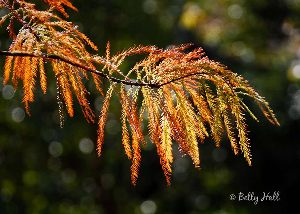And the feathery green leaves of the Bald Cypress are turning shades of bronze and gold.