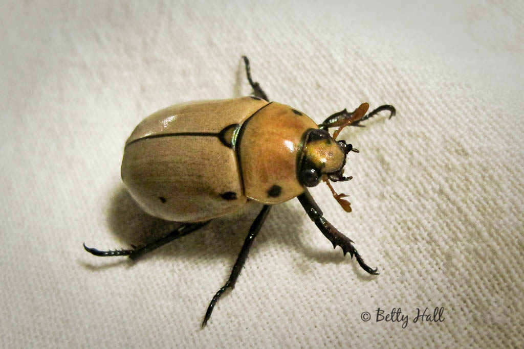 How about this Grapevine Beetle (Pelidnota punctata)? I was surprised and delighted to know we had such a striking creature in our backyard.