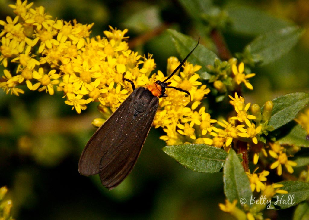 I wouldn’t have guessed this Yellow-collared Scape Moth (Cisseps fulvicollis) was a moth, either. It is apparently widespread over much of the U.S., feeds on flowers by day and is attracted to lights at night.