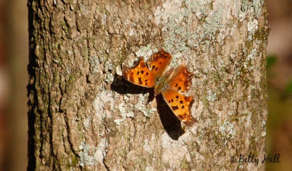 This was the camera I used to capture my first Eastern comma butterfly (Polygonia comma) of the season. I used my favorite lens, a Tamron 18-27o mm zoom. I took the photo from 12 feet away and cropped it to get this close-up.