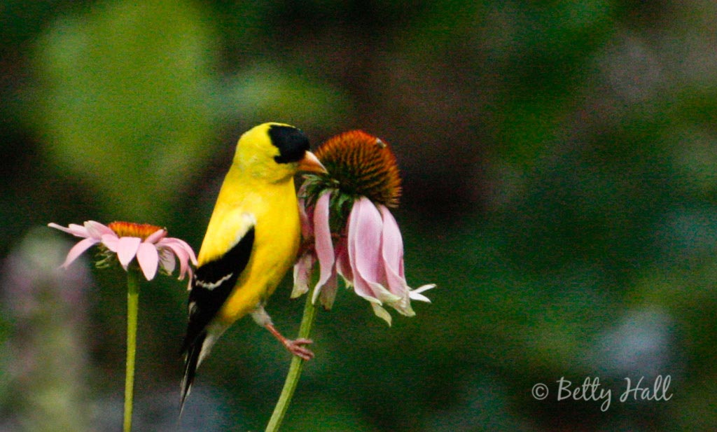 Cone flowers are one of my favorites also because they attract so many wonderful visitors, Gold Finches are one of my favorite. They also love to feast on cosmos & zinnias, very easy to grow from seed. I didn’t even plant the zinnia seeds this year, they just self sowed from last year. The cosmos is fairing very well even in the heat & drought conditions. It blooms non stop until the frost according to what I have read, although my experience has been that many weather mild frost & continue blooming. Neither are invasive, although native to Mexico. Thanks for sharing your colorful photography, Betty! Love every time I find an update in my inbox.