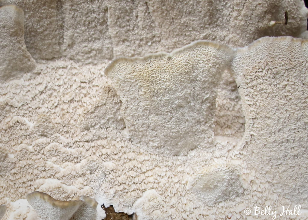 According to Ms. Stone’s book, Turkey Tail mushrooms have pores instead of gills. When I checked the underside, I did indeed find pores and a different kind of beauty – click image for a closer view.